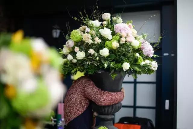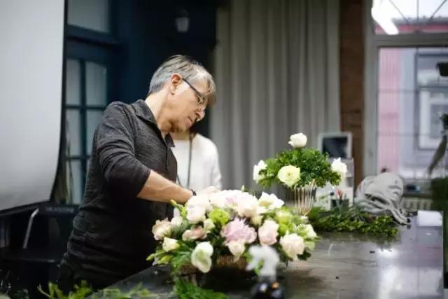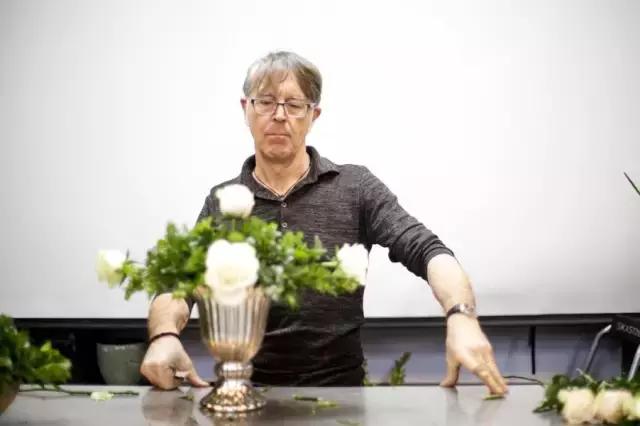 從葉材的打底到花材的添加,所有材料都應該相對均勻的分布與作品中,并創造出一定的層次和進深感。