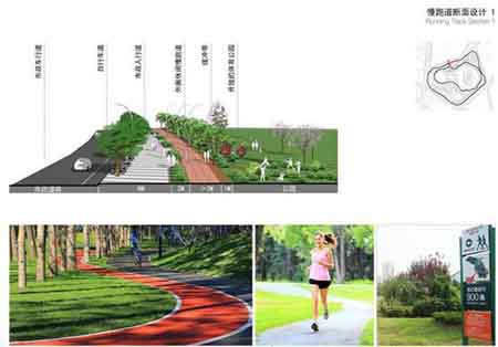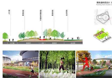 徐家匯體育公園將打造多層次的慢跑系統。通過聯動城市界面,利用人行道空間,結合街道斷面改造設計,營造安全舒適的沿街步道,與徐匯區的街道跑步網絡對接。在公園內部,形成串聯場館和戶外空間的地面慢跑道,線形靈活有趣,結合公園的不同功能布局,營造移步異景的跑步感受。