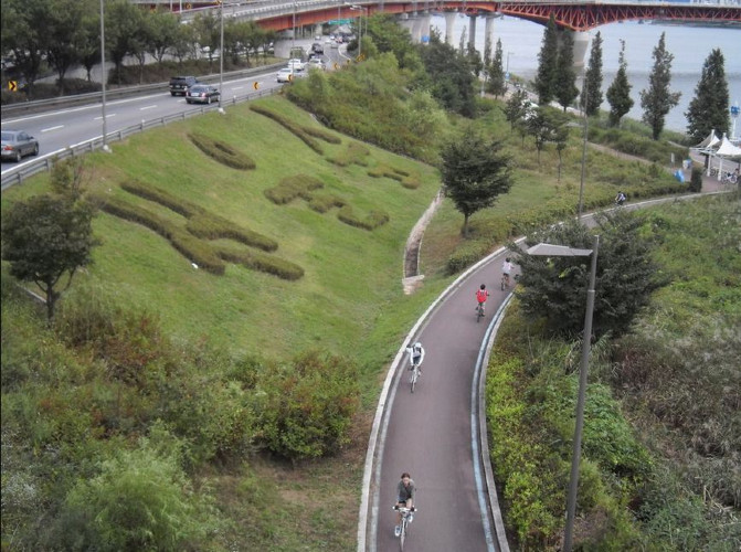 與其他地區(qū)相比,公園綠化面積不足的首爾為東北部地區(qū)生活的市民在市中心提供一個(gè)感受自然的休息空間。休閑空間呈現(xiàn)樹林的形態(tài),強(qiáng)調(diào)親環(huán)境要素的公園全部種植著胸徑30~40cm樹高20m的104種42萬棵樹木。其中代表性的有橡樹、櫻花樹等。可以讓心和眼睛得到最大程度的放松。