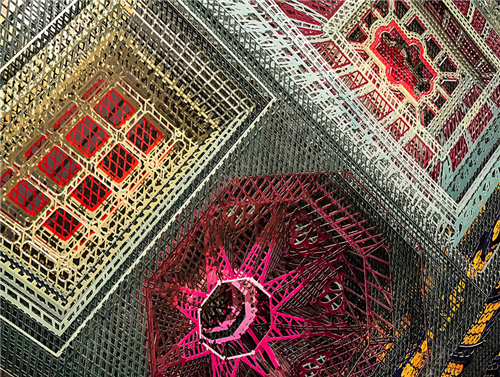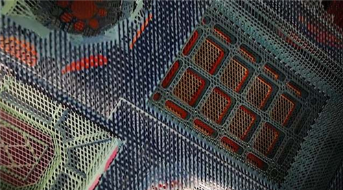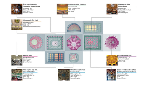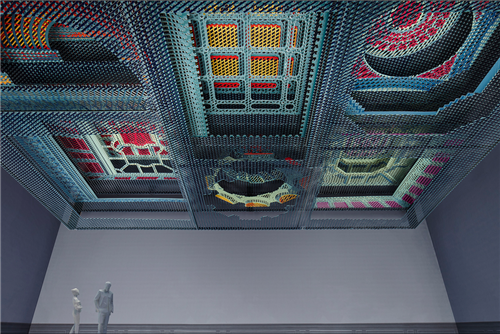 400年之后,來自紐約與洛杉磯的建筑設計事務所FreelandBuck將這一概念進行了升華,其推出的裝置“視差裂縫”,是Renwick美術館和Smithsonian美國藝術博物館共同選出的“Renwick之上”(ABOVE the Renwick)競賽冠軍。從2017年7月至2018年2月,2500平方英尺(約232平方米)的垂幕將會懸掛于Renwick最大展廳Bettie Rubenstein大沙龍(Bettie Rubenstein Grand Salon)的天花板下,描繪一系列抽象的美國建筑標志。