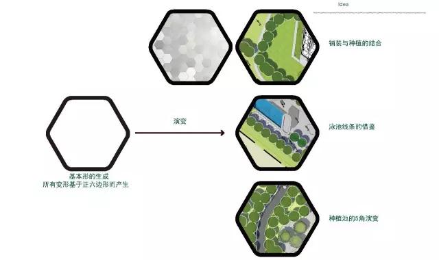 景觀設計中基本形的生成,均基于安瀾酒店整體結構的正六邊形而產生。清水混凝土設計語言的大量運用,輔以多邊形態的演化,塑造了阿那亞安瀾酒店簡單質樸卻極具視覺沖擊的效果。