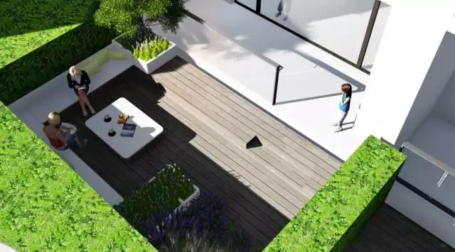 這種設(shè)計(jì)手法側(cè)面消隱了戶外空間對一樓業(yè)主的全部影響,最大可能地保證了一樓業(yè)主的隱私,可謂一箭三雕的景觀處理方法。