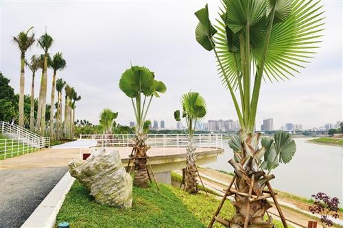 邕江南岸的五象新區(qū)一帶,沿江的景觀也在大變樣。在邕江南岸綜合整治工程萬達(dá)茂段,沿江景觀節(jié)點(diǎn)之一的“五象閱江”景觀,利用邕江岸邊現(xiàn)狀水塘,配置銀海棗小葉欖仁、狐尾椰、雞冠刺桐、亞熱帶植物棕櫚等植物,打造一個(gè)“邕江大水景、岸邊小水景”的漫步休閑親水駁岸空間。記者注意到,除了綠化景觀化,項(xiàng)目設(shè)計(jì)包含平臺(tái)、棧道、構(gòu)筑物、水景等若干景觀元素,還設(shè)計(jì)了沿江自行車道、休閑步道、親水棧道等。