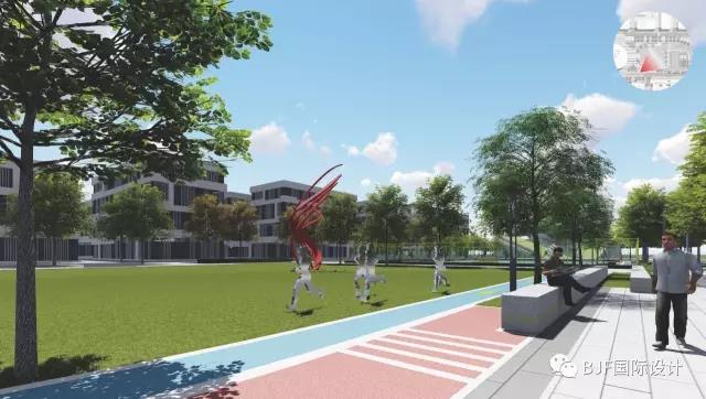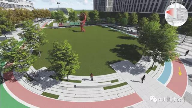 B區運動區主要體現健康、運動主題,設計了環形跑道、籃球場、網球場、乒乓球臺等實用而又普及率高運動設施,為下班后的人們提供一個運動空間。