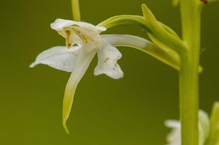 二葉舌唇蘭(學名:PlatantherachloranthaCust.exRchb.):植株高30—50厘米。塊莖卵狀紡錘形,肉質。莖直立,無毛,近基部具2枚彼此緊靠、近對生的大葉。基部大葉片橢圓形或倒披針狀橢圓形。總狀花序具12—32朵花,長13—23厘米;花較大,綠白色或白色;花瓣直立,偏斜,狹披針形,長5—6毫米,基部寬2.5—3毫米,不等側,彎的,逐漸收狹成線形,寬1毫米,具1—3脈,與中萼片相靠合呈兜狀;唇瓣向前伸,舌狀,肉質,長8—13毫米,寬約2毫米,先端鈍。花期6—7月。