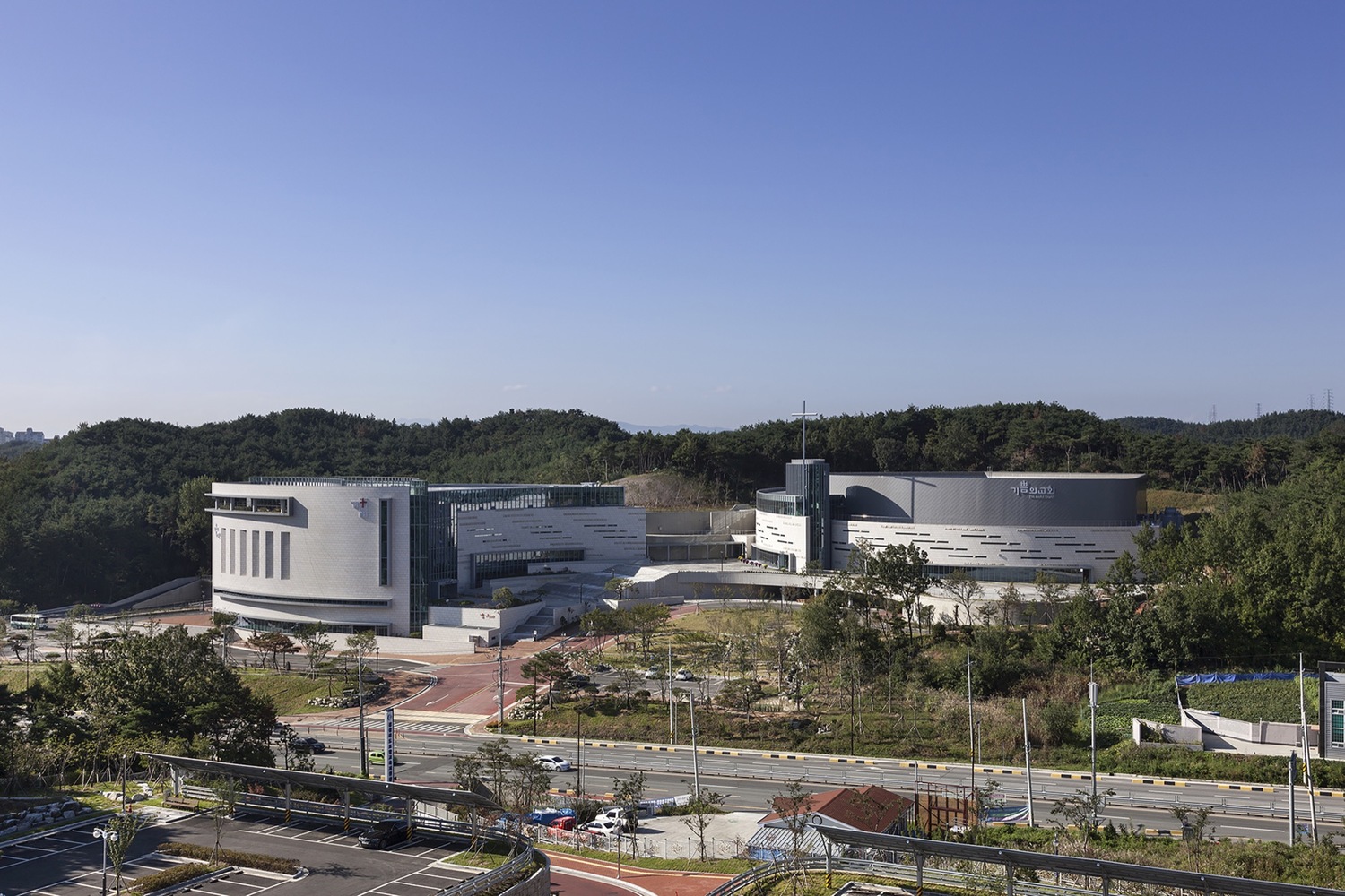 教堂希望能夠擁有一個表達強烈基督象征的設計,但同時也要使用傳統韓國特征,融合建筑、信仰和文化于一體。教堂的基地位于浦項新開發的城鎮區內,面積10英畝。該基地存在許多發展性的挑戰,包括斜坡,樹林叢生的山坡,以及嚴格的分區限制。
