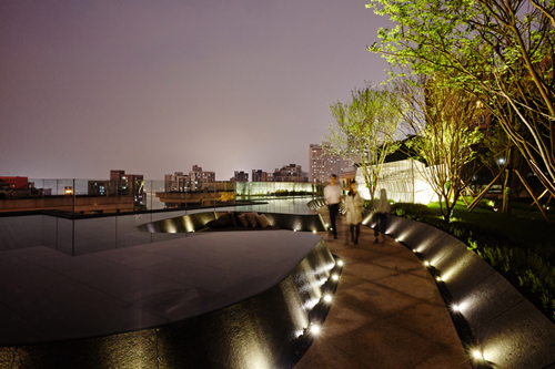 整個項(xiàng)目的設(shè)計和施工過程高效而富有挑戰(zhàn)。我們同建筑設(shè)計師經(jīng)過多次的探討和研究,讓建筑和景觀高度整合。并且在施工過程中,我們幾乎每天都在現(xiàn)場同施工單位一起處理場地豐富的豎向變化和精致的細(xì)節(jié)表現(xiàn)。這是一次很好的協(xié)同設(shè)計,也希望有更多這樣的嘗試為居住環(huán)境帶來更多有趣的體驗(yàn)。