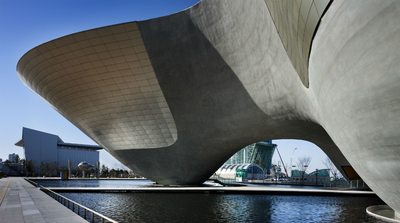 該項目的設計目標是在韓國仁川港的Song Do中央公園建設一座標志性建筑以象征仁川港的形象,并提供展覽、表演和聚會的空間。建筑看上去像是三個連在一起的碗。弧形的墻體之上是平屋頂,頂層是一個寬闊的平臺。外墻體一部分是直接暴露的混凝土,一部分加覆了鋁塑板。