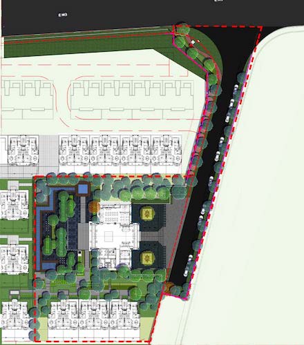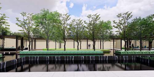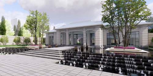 ▲售樓處前場(chǎng)秉承軸線對(duì)稱的序列(Holi河貍-景觀攝影)