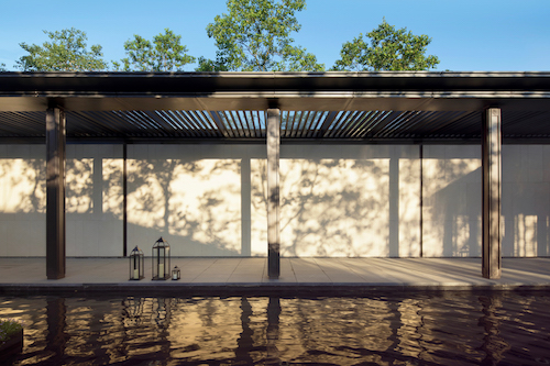 池邊設(shè)置的休憩亭,是整個(gè)后場(chǎng)園林場(chǎng)景中打造的生活空間,也是觀賞烏桕林的極佳視角。角落的洽談空間,與水池邊的空間形成反差,營造了一種安靜私密的氛圍。