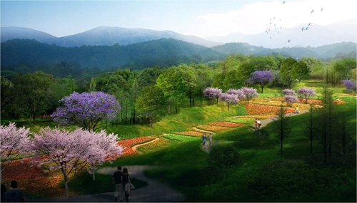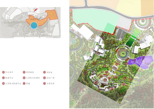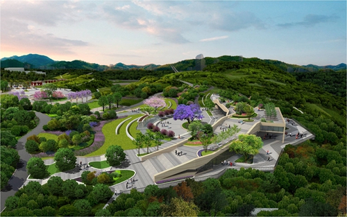 石坪公園整個前沿科技城的重要綠地地塊,結合場地的周邊環境,它的設計定位是一個集生態、休閑、運動、文化、科技為一體的區級綜合性公園。結合“石坪新韻,暢享自然”的設計主題,在不破壞原有場地自然條件的情況下,打造一個滿足市民各種需求的的生態綠地。在尊重原始地形的基礎上,以一帶多環五節點的景觀結構串聯起整個場地,景觀花谷、山地杜鵑等提高公園的可參觀性,運動場地、活動空間、休憩平臺則提高了公園的體驗性。本項目最大的設計亮點就是將科技、智創融入場地的設計中,智能化管理公園的各項配套設施,小品雕塑可以融入燈光科技與二維碼的掃描模式,趣味性與觀賞性同時達到。植物方面則多利用場地原有的自然資源,根據各分區的景觀特點具體設計。