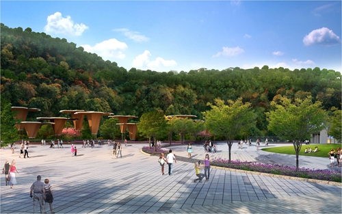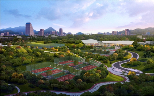 項目基址位于重慶市主城渝北區臨空前沿科技城,構建出智創生活、科技引領的新型生態、運動公園,將成為渝北區科技引領新型生態公園建設的里程碑。項目基址的地形主要以山地為主,在此基礎上,將多元化的體育項目與之結合,形成獨具特色的山體休閑運動綜合公園。項目基址中綠化條件良好,充分尊重原始地形地貌,營造新城建設中的綠色生態明珠。