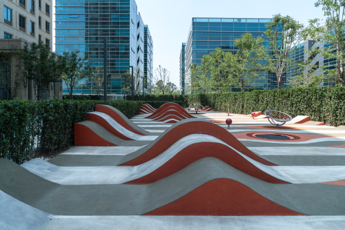 區域南側的住宅區由小型花園和高大的綠籬植物半圍合而成。還有一些私密的景觀空間,可供人們沉思冥想。兒童游樂區有許多獨特的游樂設施,適合不同年齡的人群。健身房、水景花園以及各種可以供人們娛樂休閑的設施散布于場地之中,有的受到陽光照射,有的處于陰影之中。每一個設計獨特的空間都帶給人們享受生活、體驗生活的樂趣。場地周邊還有一條健身小路,可供人們跑步或者進行其他運動。