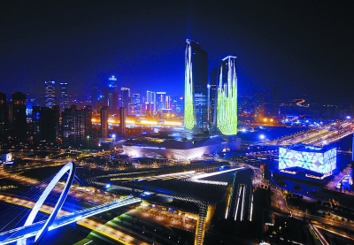 ▲河西青奧中心夜景 本報記者 崔曉攝