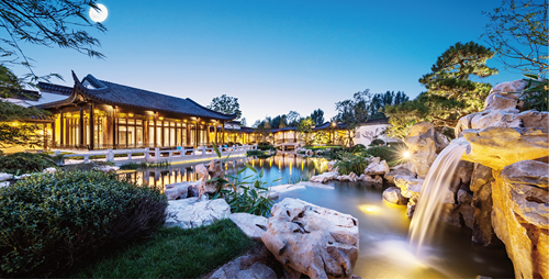 項目示范區(qū)參考傳統(tǒng)蘇式園林的傳統(tǒng)技法,應用于擋墻、太湖石假山及水系、卵石花街、植物配置等方面。將北方高山的氣概與江南園林的細膩溫婉相融合,呈南園北漸之勢,更顯隱逸和諧。