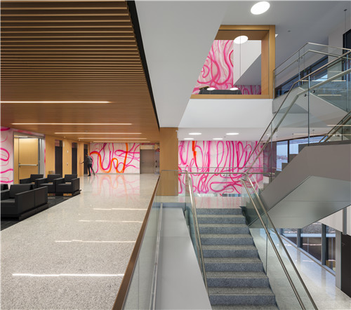 通過一個中心的中庭和一些人行道,確保了不同區域的直接交流和空間關系,并且表達出了這棟樓不同公共區域的特征。
