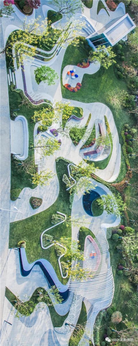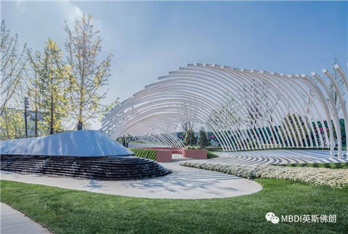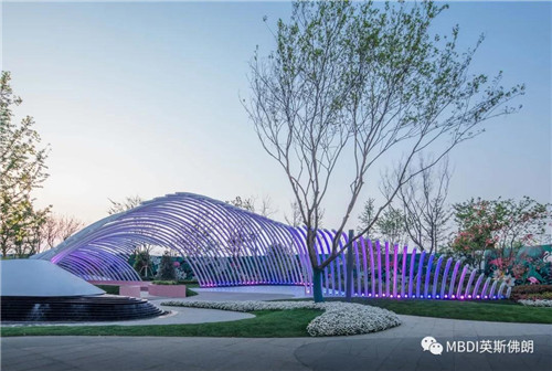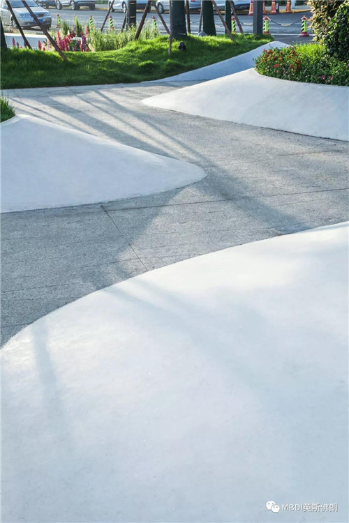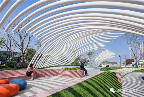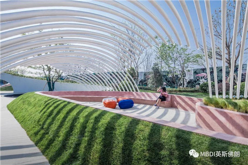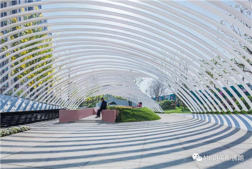 地采用白色作為主基調(diào),整體純粹的白色盡情的允許光的表演,自然的光影與景觀空間相結(jié)合,讓人在場(chǎng)地中感受自然帶來的青春活力、夢(mèng)幻與精彩。