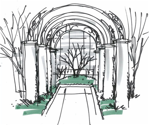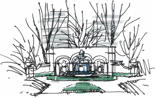 根據(jù)現(xiàn)有的建筑布局,結合景觀風格造景手法打造“開合有度,收放自如”的特色景觀空間。