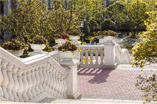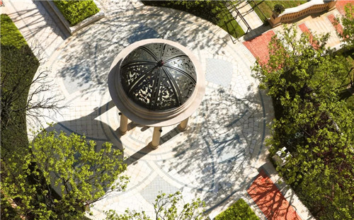 基于法式建筑風格,以草坪,石材共同營造開闊簡約的空間美學景觀。
