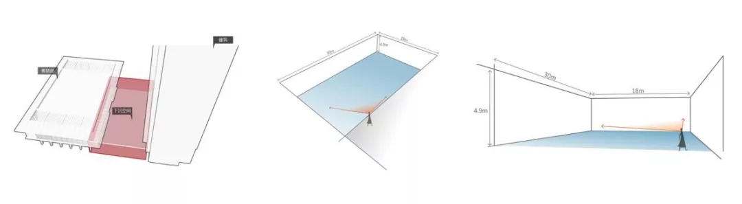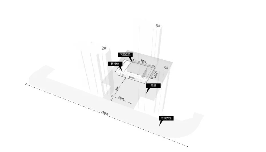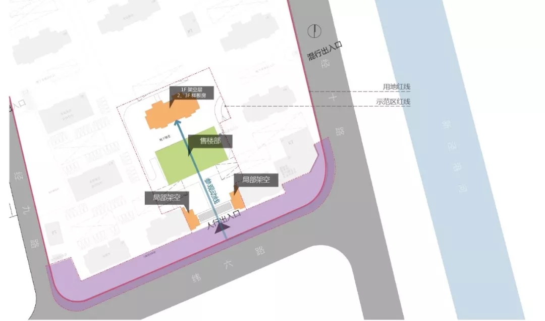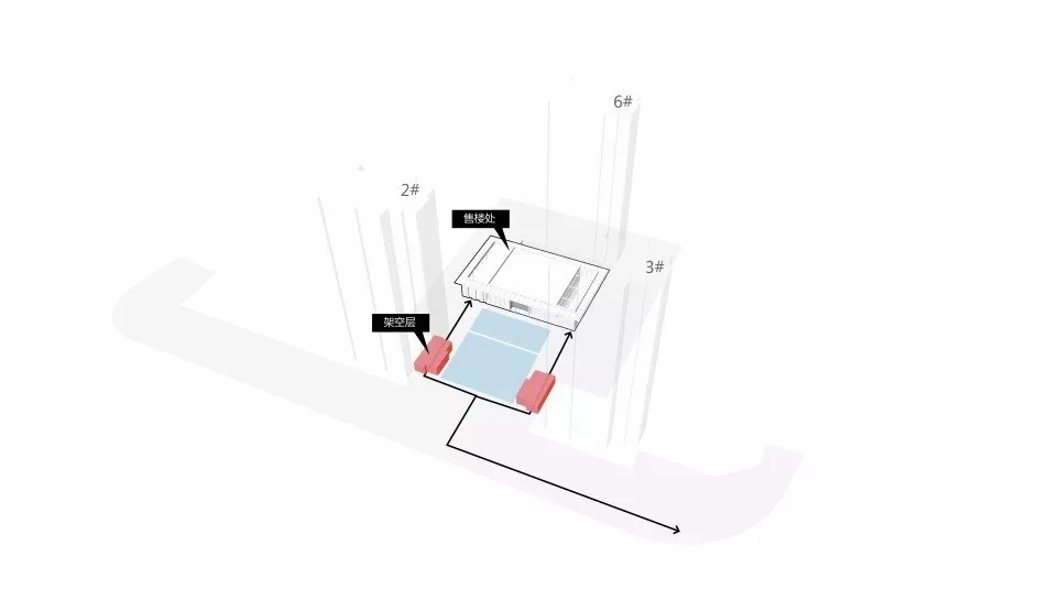 1、利用2#、3#樓的架空層,將參觀動線趕往兩側邊界,預留出最大化前場展示空間;
