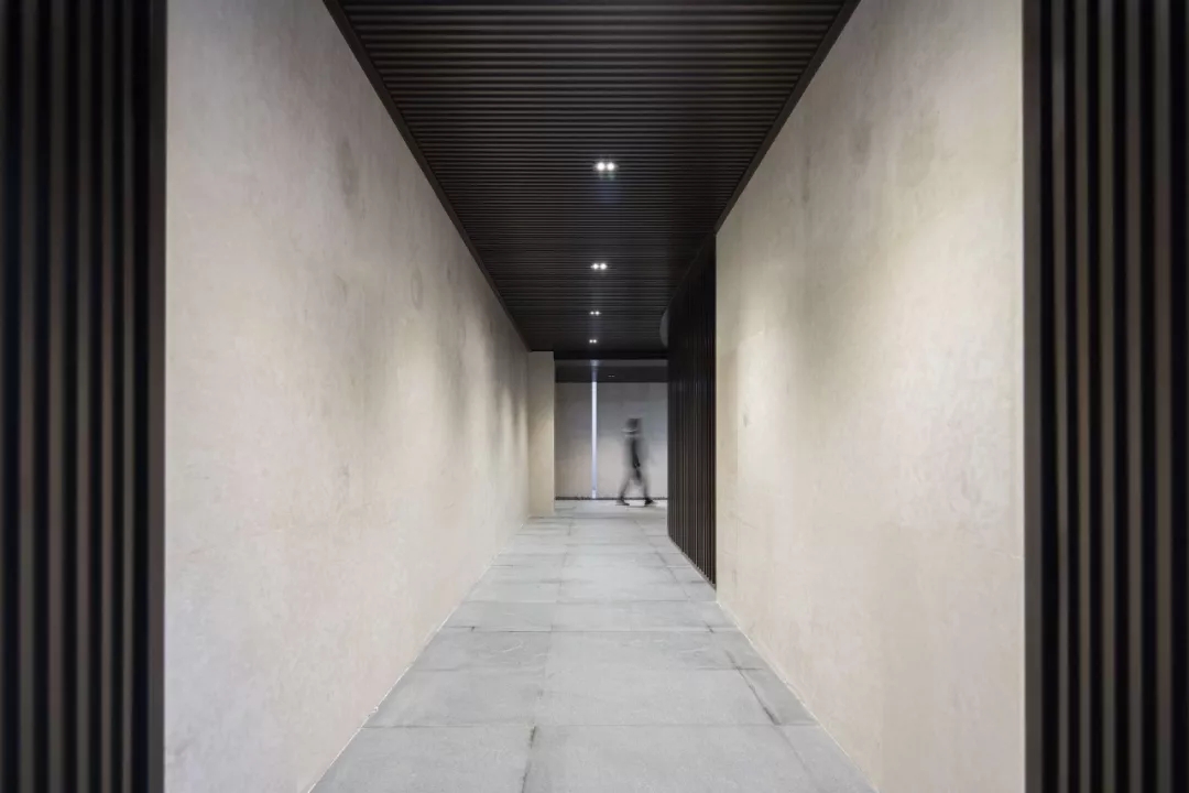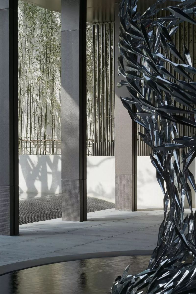 運用鏡面不銹鋼的材料特質,放大空間,通過對體塊比例的拿捏,營造豐富的立面層次,將駐足觀賞穿插在不同的標高處,一條谷道聯系了庭院上下,豐富了參觀動線。