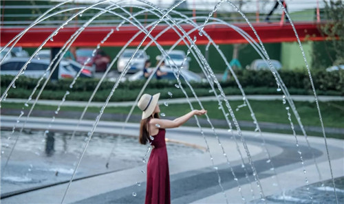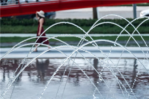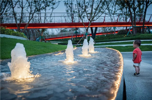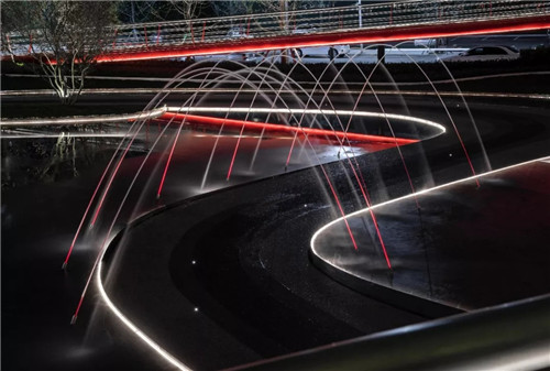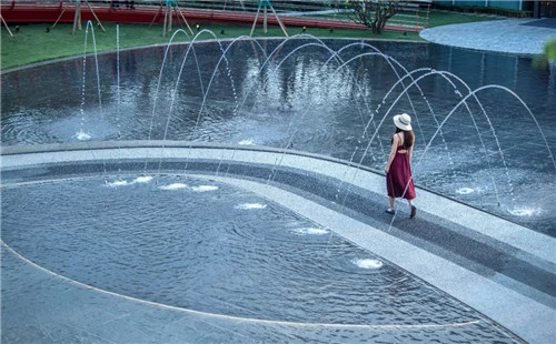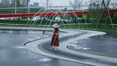 從橋下穿行而過,在你不經意走過的某個瞬間,觸發感應跳泉,一道道水門熱烈地歡迎著你,給你的生活加一場意外的浪漫驚喜。