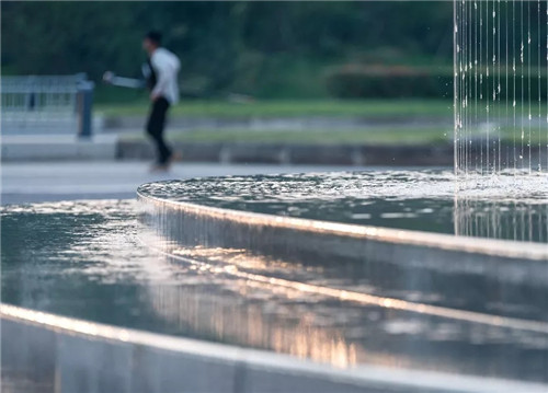 綠色的精靈在陽光里蕩漾,寧靜的午后陽光制造浪漫,所有的美好在這綠色之中涌動,在水的流動中叮咚作響。人們在走入場地,時間在見證,場地將成為人們生活的一部分,場地將在人們的記憶中刻寫新的故事。