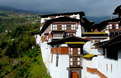 不丹的“宗”:“宗”(過去的縣政府機構)的建造是由西藏傳承而來的,代表著政教合一的傳統。不丹保存最完好的建筑群都是“宗”。不丹的寺院是很樸素的,不似西藏的布達拉宮那樣光彩照人,是典型的清凈之地。許多佛像都不對游人開放,入廟前一定要脫鞋,不許帶相機,不許大聲喧嘩,不許指指點點。佛院里都塑有四大天王像,但沒有彌勒佛像;有觀音像,但沒有善財龍女。不丹男人必須帶綬帶,偌大的寺院僧人很少,基本沒有誦經和法號聲,參觀者亦寥寥無幾,70%的房間閑置或大門緊鎖。