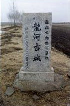 龍河古城遺址位于訥河市龍河鎮(zhèn)勇進(jìn)村南1公里,南鄰訥漠爾河,勇進(jìn)河由南向北流經(jīng)古城東側(cè)。古城地處訥漠爾河中下游右岸的二級(jí)臺(tái)地上,海拔高度228米。古城遺址已經(jīng)辟為耕地,耕地土質(zhì)肥沃。臺(tái)地以南為訥漠爾河低河漫灘,每逢雨季勇進(jìn)河水流量增大,直接沖刷古城址東北角和東南角。訥漠爾河水上漲時(shí),可直抵古城遺址二級(jí)臺(tái)地南部邊緣。勇進(jìn)河兩岸布滿灌木柳,低河漫灘處是草原牧場(chǎng)。古城西城墻處有一條南北向防風(fēng)林帶,并有村路通過(guò)。 1960年7月12日,黑龍江省博物館朱國(guó)忱等人沿嫩江左岸及其支流進(jìn)行考古調(diào)查時(shí)發(fā)現(xiàn)古城遺址,并征集到描金馬具飾件、骨鳴鏑和唐宋銅錢。其中骨鳴鏑確定為明代遺物。1981年復(fù)查時(shí)采集到一件玄武巖質(zhì)小石臼。1982年在遺址附近征集到三面比較典型的金代銅鏡(雙魚銅鏡,青蓋銅鏡,雙童采蓮銅鏡)。此后,在多次對(duì)該遺址的復(fù)查中又采集到陶網(wǎng)墜、布紋瓦、車輨等遺物。1996年5月,在文物保護(hù)部門及有關(guān)部門的協(xié)調(diào)下,在此地實(shí)施了勇進(jìn)河改道工程,以保護(hù)古城遺址不被河水沖刷。施工期間,發(fā)現(xiàn)石臼、鐵鐮、鐵鍬、鐵槍頭、鐵車輨、鎧甲片等金代遺物。 1985年4月,被訥河縣政府確定公布為縣級(jí)文物保護(hù)單位。 1990年10月訥河縣政府公布了此遺址的保護(hù)范圍。1991年樹立了保護(hù)標(biāo)志碑和界標(biāo)。2005年4月,被省政府公布為省級(jí)文物保護(hù)單位,更名為龍河城址。2005年1月31日公布為省級(jí)文物保護(hù)單位。