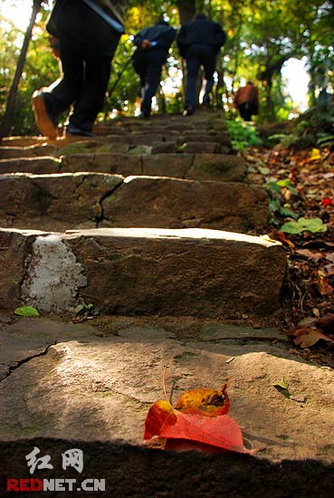 這種黃葉與紅楓搭配在一起,把深秋的岳麓山點綴得更加艷麗動人。