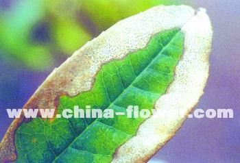 桂花炭疽病病斑特寫 上海交大農業生物學院楊康民都江堰市香滿林苗圃 張林 文/圖