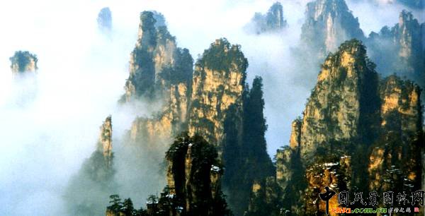 該區域布滿3000多座細長的砂巖石峰石柱,許多都高200多米。