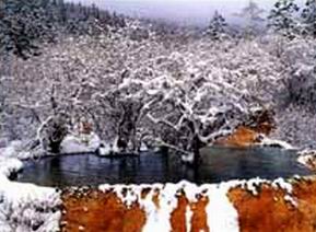 主景區黃龍溝,似中國人心目中“龍”的形象,因而歷來被喻為“人間瑤池”、“中華象征”。在當地更為各族鄉民所尊祟,藏民稱之為“東日·瑟爾峻”,意為東方的海螺山(指雪寶山)、金色的海子(指黃龍溝),并沿襲著一年一度盛況煊赫、波及西北各省區各族民眾參加的轉山廟會。寒冷以五顏六色的池水,光芒萬丈的雪山,十步九曲的峽谷,神秘的大森林“四絕”稱著于世。其雄、峻、奇、野的風景特色,享有“世界奇觀”、“人間瑤池”之譽。