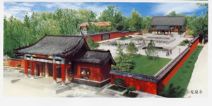 龍泉寺,雄踞在百脈泉北岸,為濟南地區著名佛寺。始建于景泰元年(1450年),原名隆泉寺,嘉靖年間重修后,易名龍泉寺。由于歷史的風剝雨蝕,配殿早已廢圯,現僅存大殿梵王宮。經1996年重修改造,面貌煥然一新。殿內,佛像金碧輝煌,壁畫形象生動,是善男信女禮佛參禪的所在。佇立梵王宮前,云蒸霞蔚的湖光山色盡收眼底,如在瀟湘仙境,使人神致飛動。殿下之百脈泉,由品形并列的三大方池組成,中架石橋相通。池內,百脈沸騰,出神入化;涌珠浮翠,透泄天真,堪稱天下奇觀。歷代文化名人在她身邊流連忘返,酣暢吟詠。留下了許多佳詞麗句,精美石刻。讓游客在觀泉的同時得到一種文化享受。