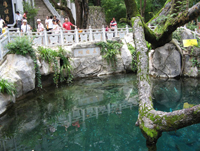 ![]() 離周城不到兩公里,在蒼山十九峰的第一峰云弄峰下,有一處蝴蝶泉,是大理的名勝之一。凡到大理的游人,沒有不到那里一游的。 穿過一座鐫有郭沫若手書“蝴蝶泉”大字的大理石牌坊,就可見到在綠樹叢中,有一泓用大理石圍砌的泉池。池底汨汨地涌流著幾股清碧的泉水。泉水清冽甘美,富含有益人體健康的礦物質(zhì)。于是,游人皆俯身于出水口的小渠旁,捧起一兩把泉水品嘗。為此當?shù)赜兄V曰:“喝點蝶泉水,夠你萬年醉。” 一棵古老的“蝴蝶樹”,從池上橫臥而過。每到春未夏初繁花滿樹時,各種形狀的蝴蝶飛來這里聚會。最奇異的是農(nóng)歷四月十五這天,一串串蝴蝶,首尾相銜,從樹上一直垂到泉池水面,隨風飄曳,五彩繽紛,蔚為奇觀。 蝴蝶為什么在這里相會呢?生物學家曾對這一現(xiàn)象作過深入的觀察和研究。原來,附近山溝,溫和濕潤,花繁草茂,宜于蝴蝶生長。而蝴蝶泉邊的“蝴蝶樹”,每到春末夏初,開滿狀如粉蝶的花兒,芬芳引蝶。這時,樹葉還分泌一種像蜜汁般的油亮粘液,也可供彩蝶食用。于是,每當?shù)ㄊ㈤_時節(jié),萬千蝴蝶便飛來這里交配、產(chǎn)卵,形成一年一度的蝴蝶會。 關于蝴蝶泉的由來,民間流傳著種種解釋和神奇有趣的故事。其中一個故事是: 蝴蝶泉原名無底潭,潭邊住著樵夫張老爹和孤女雯姑。一天,父女倆上山砍柴,忽見一只受傷的小鹿跑來伏倒在雯姑身邊,喲喲哀叫。不一會兒,一個手持弓箭的獵手也緊緊追了上來。雯姑抱起可憐的小鹿向獵人求情,請求不要殺死小鹿。獵人名叫霞郎,他接愛了雯姑的請求,即以小鹿相贈,并從藥囊中取出藥粉,為小鹿敷藥治傷。雯姑對霞郎感激不盡。此后,他倆常在無底潭邊相會。雯姑還把自己繡有一百只蝴蝶的“百蝶巾”,作為愛情的信物送給了霞郎。 誰知大理城的虞王,對美貌的雯姑早就垂涎三尺了。他求婚被拒絕后,借口要讓雯姑去虞王府里繡百蝶巾,把她搶走。張老爹上前救護,竟被虞王府兵丁活活打死。通人性的小鹿目睹這一幕幕慘狀,立即飛奔上山找到霞郎,咬著他的衣裳往山下拽。霞郎來到無底潭邊,見了雯姑的遺信,他先安葬了老人,隨后便背上弓箭,騎馬舉刀趕到虞王府。趁著夜深人靜,霞郎救出了雯姑。虞王發(fā)現(xiàn)后,急派總管率兵追來。霞郎張弓搭箭,一箭射倒一個追兵……無奈追兵人多勢眾,霞郎只得護著雯姑且戰(zhàn)且退,最后退到無底潭邊。這時,霞郎的箭射完了,刀也砍斷了。在無路可逃時,霞郎雯姑相抱著躍入無底潭,小鹿也跟著跳潭為自己的主人相殉。 說來也怪,就在他倆跳潭時,萬里晴天突然變?yōu)殡婇W雷鳴,下起暴雨,把虞王的總管和兵丁嚇跑了。 雨過天晴,鳥語花香,潭中飛起一對大彩蝶,隨后又飛出一只只彩蝶。相傳,它們就是霞郎、雯姑及小鹿和霞郎貼身所帶的“百蝶巾”的蝴蝶所變化的。 為紀念霞郎、雯姑,人們不但把無底潭改名蝴蝶泉,還在他倆跳潭殉難的農(nóng)歷四月十五這天,到泉邊憑吊,懷念這對堅強不屈的情人。一對對情侶戀人,還在這天到泉邊聚會,唱調(diào)子,跳舞,傾訴愛戀之情。四面八方的彩蝶,也在這天紛紛飛來泉邊相會,遂成大理的奇特景觀之一。
