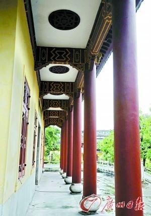 完全可以用與眾不同來形容它。用廣州嶺南建筑研究所所長湯國華的話來說,“對山園”的風格,像是廣州的“避暑山莊”。 它是一座五開間重檐歇山頂的殿堂式建筑,木結構屋頂,并采用當時先進的鋼筋混凝土技術。它既有北方特色的方椽,又有嶺南特色的“雞胸飛子”,體現了中西結合、南北結合的特色,可以說是廣州民國初期中國古代建筑的特例。 它的設計堪稱經典。首先是聚散結合:建筑主體部分有前堂、后堂、側廂,離開主體建筑不遠則有一幢二層小樓,大堂和二層小樓通過廊橋連接;其次是高低結合:大堂建在平地上,而山上則建有亭樓;同時,這里的建筑又與園林、水景結合,互為配景,相得益彰;最讓人看到眼花繚亂的,還是“對山園”的中西、南北結合。在這里,你既可以看到北方宮殿式的諸多元素,也能感受到南方建筑的樸素、清雅和通透。這里的主體建筑以北方特色建筑為主,附屬房子卻是嶺南民居風格。裝飾的細節(jié)上,既有中國傳統(tǒng)式的隔扇門窗和上下窗,也有西式的柚木地板和壁爐…… 而最特別的要數那些“鐘形窗”,這個別致的圖案與中山陵的俯視圖極為相似,而在中山紀念堂里也有很多類似的鐘形符號。它以座鐘的輪廓勾勒出窗戶的外形,內飾橫豎木質框架,可前后推拉,也可上下開合,精巧而多變,在廣州絕無僅有。