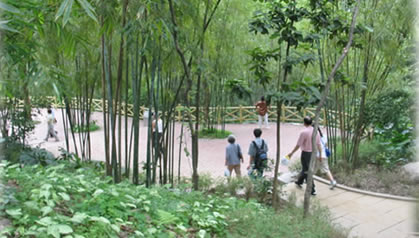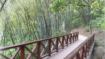 林景區位于公園的東北面,景區總面積2.5萬平方米,綠化面積2.2萬平方米。景區以“竹”文化為主題,建有竹橋、竹影潭、春筍泉、竹類植物壇、棧道等配套的園林建筑