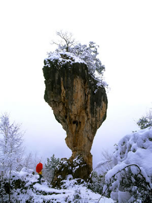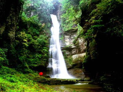 原名鼓城山—七里峽省級風(fēng)景名勝區(qū),位于廣元市旺蒼縣北部鼓城鄉(xiāng)境內(nèi),距縣城63公里,與陜西寧強縣相毗鄰,總面積約330平方公里,最高峰海拔2276米,平均高度1200米。整個風(fēng)景區(qū)內(nèi)河流縱橫,谷深巖峭,古木參天,怪石嶙峋,珍奇異獸四時可見,奇異洞府足夠觀賞。 風(fēng)景區(qū)可分為四大景區(qū):南區(qū)四奇、北區(qū)五秀、七里峽和鼓城山。 享有“仙境”美譽的米倉山自然保護區(qū)。據(jù)四川省林業(yè)勘察設(shè)計研究院、四川省野生動物資源調(diào)查保護管理站編著的《四川米倉山自然保護區(qū)總體規(guī)劃》,對保護區(qū)旅游景點予以科學(xué)評價:米倉山自然資源品位高,開發(fā)價值大,Ⅰ級景點有8個,Ⅱ級景點8個。這些景觀獨具美學(xué)價值(形象美、色彩美、動態(tài)美、聽覺美、意境美)。具有雄、奇、險、幽、秀、野、奧的特色,集自然、科考、文化、旅游優(yōu)勢于一體,是人間不可多得的自然奇跡。美國、英國、日本等海內(nèi)外人士到此旅游后,贊不絕口,稱之“有劍門之險、峨嵋之秀、廬山之奇、黃山之峻、青城之幽……”1985年,全國政協(xié)常委、美協(xié)副主席、著名攝影家黃翔和著名書畫家邵宇游覽此地后,黃翔先生欣然提筆寫下“仙景”二字以贊,邵宇先生草書了陸游的《木瓜鋪短歌》,以表達欣喜之情?袋c 原始生態(tài)植被和生物多樣性 該保護區(qū)擁有國內(nèi)尚存不多的面積達320平方公里的原始生態(tài)植被。區(qū)內(nèi)擁有維管束植物2597種,其中國家重點保護植物100余種;擁有云豹、黑熊等脊椎動物462種,其中有44種屬國家一、二級重點保護動物。獨特自然景觀 以奇山、秀水、異石、怪洞,地質(zhì)景觀、恐龍化石、珍稀動植物的獨特自然景觀群落。如奇山中有神奇的東西天鼓、漢王山等。峽谷中有以幽、峻、秀、美而聞名的“七里畫廊”——七里峽。異石中有聞名的瑯瑯石、龍首巖、靴兒巖、天花板、神仙碑等。洞穴中有聞名的白龍宮、仙女洞、石人溝等,瀑布中有黑龍?zhí)镀俨,端公潭瀑布等。南區(qū)四奇 指的是巖縫口、穿眼子、塔地洞、華蓋石。巖縫口在旺蒼縣干河鄉(xiāng)元山村境內(nèi),是去縣國營林場必經(jīng)之路,此處千仞峭壁中間裂縫,約5米寬。遠看一塊巨石夾峭壁之間,云霧之中,搖搖欲墜,近觀頭頂一線天,兩壁堅不可摧,人行其間,絕不會有大石砸頭的危險。 穿眼子,在絕壁正中,生出一個圓孔,直徑約20米,四周無任何障礙,也無法攀援,只有站在對面的山腰,對準石孔,可以看到石孔背面的風(fēng)光景色,恰似一個巨大的萬花筒。 塔地洞,是一個巨大的溶洞,深不可測,至今還沒有人探明洞府的盡頭,洞內(nèi)石筍、石柱、石蓮、石乳、晶瑩玲瓏,有的像菩薩坐禪,有的似滾龍抱柱,有的似二龍戲珠,有的似仙女散花,有的似美女翩翩起舞,千姿百態(tài),不可盡言,萬千景象,令人賞心悅目。 華蓋石,距穿眼子二里許,山峰兀立一株石蘑菇,又似華蓋,故名華蓋石。菇莖粗達十人圍抱,菇盤周長大約500米,盤下可容數(shù)百人乘涼、躲雨、游玩。北區(qū)五秀 指的是鐵佛寺、干河壩、門扇巖、大水潭和大巖河瀑布。