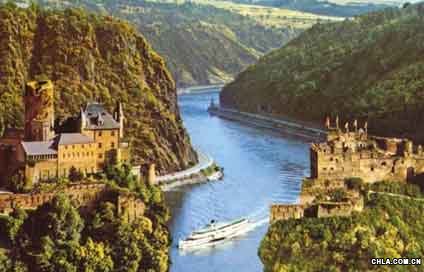 萊茵河在歐洲是一條著名的國際河流,它發(fā)源于瑞士境內的阿爾卑斯山,流經德國注入北海,沿途的列支敦士登、奧地利、法國和荷蘭都留下了它的足跡。自古萊茵河就是歐洲交通最繁忙的水上通道。萊茵河流經德國的部分長865公里,流域面積占德國總面積的40%,是德國的搖籃。從科隆到美因茨的近200公里的河段是萊茵河景色最美的一段,這里河道蜿蜒曲折,河水清澈見底。人們坐在白色的游艇之上,極目遠望,碧綠的葡萄園層次有序地排列在兩岸,一座座以桁架建筑而引人注目的小城和五十多座古堡、宮殿遺址點綴在青山綠水之中。一段段古老的傳說不時把人們的思緒帶向遙遠的過去,人們深深地陶醉在這充滿浪漫情趣的多姿多彩的萊茵河美景之中。 ![]() 萊茵河航運十分方便,是世界上航運最繁忙的河流之一。萊茵河干流全長1320多千米,通航里程將近900千米,其中大約700千米可以行駛萬噸海輪。萊茵河還通過一系列運河與其他大河連接,構成一個四通八達的水運網。 在賓根城外萊茵河心的萊茵島上有一座“鼠塔”。據說它是由羅馬元帥德路威斯在公元前8年修建的關稅塔。相傳公元10世紀時,美茵茨主教哈托二世為人吝嗇殘暴,他不顧百姓的饑苦,把大量糧食藏在塔中。百姓忍無可忍。將他禁錮在塔中,主教最終成了成群的老鼠的美餐。由此,“鼠塔”成了關稅塔的別名并一直流傳至今。今天“鼠塔”作為萊茵河上的信號塔指導著來往船只的航行。與塔隔河相望的是享有“紅葡萄酒之鄉(xiāng)”的美譽的阿斯曼斯豪森市。尼德瓦爾德紀念碑高高聳立在尼德林山下。紀念碑高35.5米,是為紀念1871年德意志統(tǒng)一帝國而建造的。 順萊茵河而下,地處圣·哥阿和圣·哥阿斯豪森之間有個地勢十分險惡的狹窄地段,右邊有巨石赫然突起,直刺云天,這就是“羅累萊山崖”。崖高132米、寬90米,徒峭的巖壁像一個美麗的少女亭亭屹立于萊茵河的彎角處。每當河水下降時,人們還可以清楚地看到危險的“七少女”暗礁,傳說它是由鐵石心腸的美女變成的。這些奇特的暗礁在落日余輝的照耀下就像少女在梳妝打扮,姿態(tài)嫵媚迷人。自古已來,這里暗礁林立、漩渦四起,給無數的船夫帶來了災難,并由此產生了船夫被妖女羅累萊的美姿及動人的歌聲所迷惑而喪身江水的動人傳說。這是萊茵河浪漫色彩的象征,每當游船在此經過,羅累萊之歌就會響起,美妙的歌聲把人們帶進了童話般的夢境之中。 在萊茵河畔有一座歷史名城呂德斯海姆,這是一座古色古香的小城,它因其擁有一條中古時代的德洛塞爾小巷而聞名。如今,這座小城已成為旅游者必經之道。德洛塞爾小巷巷寬不足5米,兩旁排列著一座座黑色桁架小樓,樓層向街心突出,極險且極富建筑藝術美感。樓上樓下鮮花點綴,鋪面精細而高雅。小巷的路面是用石子鋪成的。這里天天都有快樂的慶;顒。古老的建筑藝術、歡樂的節(jié)日氣氛,無不令游客在此樂不思返。 萊茵河兩岸的許多重要城市,如美因茨、科布倫茨、波恩、諾伊斯和科隆,它們原本都是從軍事基地變?yōu)橘Q易場所而后發(fā)展成為現(xiàn)代化城市的。在萊茵河兩岸至今仍保留著五十多座城堡、宮殿的遺址,每座城堡都有它們自己的名稱。每一座古堡都有一段古老的故事和傳說,它記載著英雄們氣吞山河的業(yè)績及幽幽的兒女戀情。古老的城堡、迷人的傳說伴隨著游者整個萊茵旅程。