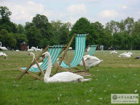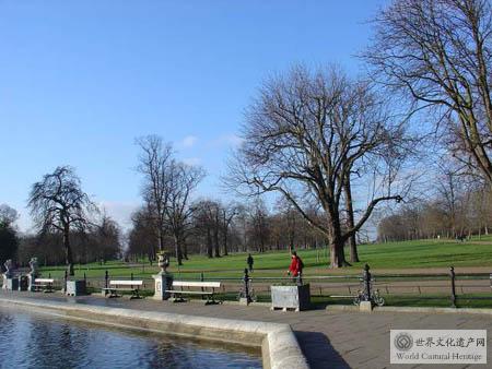 九曲湖穿園而過,夾岸的林蔭里棲息著許多種鳥類,河邊還有一個皮特。潘 黑色的小雕像。再往前走有一個卡羅琳王后的小畫廊,里面常舉辦一些光怪陸離的當代藝術作品展,我非常反感這里的展覽,它和周圍的氣氛極不協調。