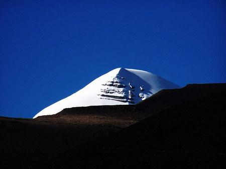 跨過岡底斯賓館南側的小河,在岡底斯賓館的東南側有一小山(山腰有經幡)。沿山路繞過這座山,再向北,再翻過2座山,如果體力一般的話要2個小時,來到面向神山南壁的Gyangdrak寺。這是神山周圍最大的一個寺,據說幾千年前苯教祖師ShenrabMiwoche來西藏時就住在這里,岡仁波齊的四大佛祖腳印之一就在寺內。左側有一出口,想一覽神山壯麗的游客,在這里可以近距離欣賞到完整的岡仁波齊峰了(依體力好壞,來回大概需要4-6小時)。