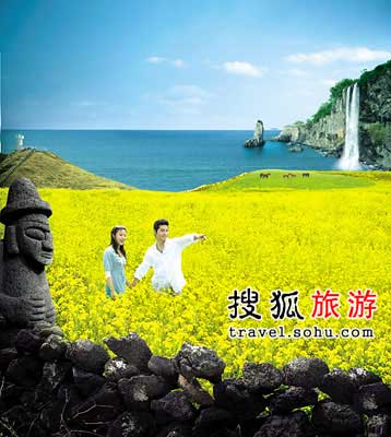 ![]() 爭奇斗艷的濟州島油菜花 為了不錯過“油菜花”花開的季節,為它而瘋狂,只身來到了屬于油菜花的節日勝地,韓國濟州島的油菜花節。 濟州島的早晨,陽光暖暖的撒在身上。在油菜花那金黃色與綠色交織的海洋里,享受著春天的氣息,對于中國人來說,濟州島是一個以“風多,石頭多,女人多”著稱的“三多島”。韓劇的熱播,早已被我們所熟悉,向往,能來到這個美麗的島嶼,不能不說是興奮。通透的天空,絕無污染的空氣,濟州島是韓國最早迎來春天的地方。當大部分地方還留著冬季戀歌的時候,這里已經綠意盎然了,滿山遍野的油菜花,就像是春天的使者,隨著南風帶來大地復蘇的消息,共同慶祝春天的光臨。而油菜花具有另一種讓人喜愛的品格則是它的淳樸與堅忍。反比那些因香與色而著稱的花朵們更具魅力。濟州島的色彩豐富可人,特別是在龍頭海岸一帶,油綠的田野上如油彩傾瀉一般,被艷麗嬌嫩的明黃色覆蓋,那就是盛開的油菜花。他們天生就是翻滾在大自然的泥土上呼吸著略帶腥咸的海風,恣意地在海島上釋放著生命的力量,成了韓國濟州島一道亮麗的風景線,成了島嶼春天復蘇的主旋律。 導游不動聲色的笑話把全車人的旅途疲憊一掃而空,真是一個美麗的早晨。心情隨著鄧麗君柔婉的歌聲,融入到這個蜜月島的悠閑當中。 途經的那條神奇之路,我們都無法相信這條橫看豎看都是上坡的路竟然事實上是下坡路。大自然很神奇,就像遍布島上的黑黑的火山石和懸崖都是鬼斧神工一樣。濟州島是韓國最大的島,東西長73公里,南北寬41公里,據說是120萬~70萬年前熔巖噴發而形成的。由于較少受到外部的影響,濟州島仍以太古的風貌浮于滄海之上。 這里沒有工廠,農業漁業和旅游業是這里的三大產業。不同的季節,濟州都有著不同的魅力。有一首描寫濟州島風景的詩:“春水滿四澤,夏云多奇峰;秋月揚明輝,冬嶺秀孤松。”雖然沒有能到海濱浴場去游泳曬曬太陽,但在勁風中看著海浪拍打著黝黑的礁石,擊碎了的浪花象珍珠一樣四散,那景色也只能在電影中看到,甚為壯觀。 ![]() 與你的愛人一起縱情賞花 騎馬踏歌 島上遍布瀑布,我們去參觀的天地淵瀑布雖然沒有中國的黃果樹瀑布寬闊,但勝在瀑布下面有著深20米的清澈淵泉,花鰻鱺的身影清晰可見。島上的溪水和沿岸的海水都保護得極好,潛入深海30米,水藻珊瑚游魚就在眼前。只是數量也已不多,紫菜海帶魚類都已成了人們的盤中餐。未受污染的紫菜干果然鮮美,團友們大包小包的瘋狂采購了一大堆。 濟州島又稱為“島嶼之島”,在它的四周有許多小島,諸如遮歸島、馬羅島、兄弟島、文島、虎島、鳥島等,沿岸可以見到許多在風中的垂釣者,雕像一般的身軀,“任憑風浪起,穩坐釣魚船。”與千年風化的巖石相輝映,成了濟州一景。濟州下海捕魚的海女也是一道風景,只是須在日出和日落之時才有緣見到。濟州島的女人既要務農,又要下海捕魚,和福建的惠安女一樣勤勞勇敢。 傳說中濟州島民風純樸,房子都是不帶鎖的,出門只用掛在門口的長木條來表示,以數量多少來告知客人出遠門了還是一會就回來。我們觀察了一下,果然發現很多現代的民居也是沒有圍墻或沒有大門的,全是落地門窗,視線極佳,真讓人羨慕。 在濟州島,看到了一種夸張而又拙樸的石雕人像,它有著突顯的眼睛、粗禿的鼻子和緊閉的嘴巴,讓人頗覺新奇。詢問導游,方知這是“守護神”多爾哈魯邦。多爾哈魯邦像既有神態威嚴、氣宇軒昂的,也有滑稽可笑的。它們大都立在城門或建筑物前,可能是同時扮演著監視者和守護神的角色。還有公母之分,以手放在腹部的位置來區別,男左女右。摸摸公的鼻子就能生兒子。橋頭的公多爾哈魯邦的鼻子黑的發亮,看來韓國的確是個重男輕女嚴重的地方。韓國女性普遍文化水平不低,只有大學畢業才能找到一份稍好工作,也是找到一個好夫婿的通行證,一般工作不超過五年就嫁人相夫教子了。女人們無論年紀大小,面容都修飾得很精致。在韓國人眼里這是一種禮貌。怪不得早餐的時候,司機對我笑笑,說了幾句嘰里咕嚕的韓語,導游給我翻譯“司機說,如果你化了妝,一定會更美麗。”我昏!趕緊給素面朝天的臉上擦點顏色順應民情。