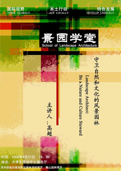 “景園學(xué)堂”是華中農(nóng)業(yè)大學(xué)風(fēng)景園林專業(yè)一種全新的學(xué)術(shù)交流形式。它是課堂之外、以教師講座為主的互動(dòng)式系列活動(dòng)。力求為師生、同學(xué)、相關(guān)學(xué)科之間提供交流的平臺(tái),旨在拓展學(xué)生眼界、開闊學(xué)習(xí)思路、了解最新的前沿動(dòng)態(tài)、專業(yè)熱點(diǎn)話題等。讓同學(xué)們從各種角度加深對(duì)專業(yè)的認(rèn)識(shí)與理解,為師生創(chuàng)造輕松、愉悅的研究學(xué)習(xí)環(huán)境,以形成科學(xué)、嚴(yán)謹(jǐn)?shù)膶W(xué)術(shù)氛圍。