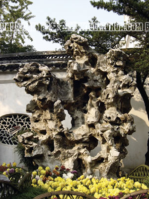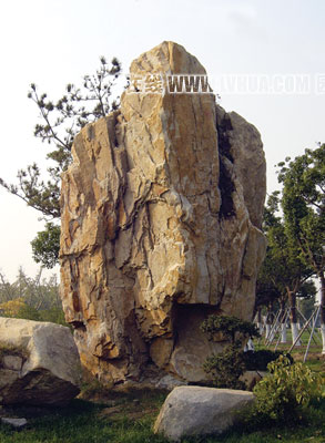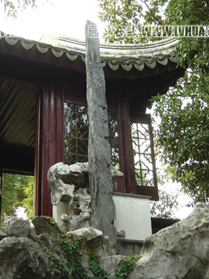 我們經常會在園林中看到由單塊山石豎向布置成獨立峰石的景觀,這就是我們常說的置石中特置山石的一種常見形式。單塊特置的峰石正如北魏酈道元在《水經注》中對承德避暑山莊東側“磬錘峰”所描寫的那樣:“挺在層巒之上,孤石云峰,臨崖危峻,可高百余仞。”它是以自然界中孤峙無倚的山石作藍本(如大家所熟知的安徽黃山飛來峰),采用特置的形式,以“一峰則太華千尋”的濃縮洗練手法,顯現峰石獨特的個體美,它好比是單字書法或特寫鏡頭,突出其自身的完整性和自然美。 峰石的特置在我國的園林發展史上是運用得比較早的一種山體意匠表現形式,古代的園主們也常以奇峰異石而爭相夸耀,宋徽宗趙佶甚至還給峰石加封爵位,賜以“神運”、“昭功”、“敷慶”、“萬壽”等峰名,“獨‘神運峰’廣百圍,高六仞,錫爵‘盤固侯’。”(祖秀《華陽宮記》)現在蘇州的瑞云峰、冠云峰就是這一時期(北宋花石綱)的遺物;峰石同時也是園主確證自我,張揚個性,展示其精神世界與審美情趣的集中體現,諸如米芾拜石、寒碧莊(留園前身)主人劉恕自號“一十二峰嘯客”等等。正是這種體量極大、姿態多變的峰石具有獨特的觀賞性,所以如果把它們和一般山石相混用,則無異于投瓊于甓,埋沒了它應有的價值。因此它常被特置于主要的觀賞位置,作為觀賞主景而加以應用,如蘇州留園的冠云峰、上海豫園的玉玲瓏等。