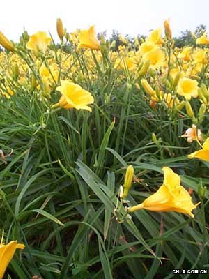 日百合學名大苞萱,屬百合科多年生宿根植物。株高20至40厘米,片密度適中,葉形較細,自然懸垂,觀賞價值高。每年5至11月份開花,既可觀葉又可賞花。日百合大約有100多個栽培品種。它可以盆栽;可以做鮮切花;可栽于喬旁,形成立體花園;可與綠籬搭配,形成彩色花帶;可植在草坪邊緣、花壇中間作為點綴;也可單獨成片栽培,更顯大氣。