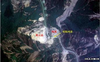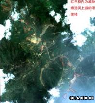 遙感圖片:震后綿竹市綿遠河上游河道嚴重受阻