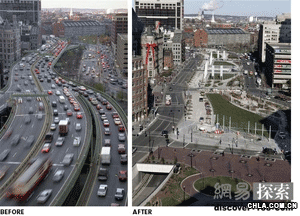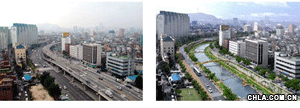 韓國(guó)清溪川高架高速路拆除前后的交通狀況對(duì)比圖