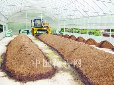 項目中,技術人員針對不同原料處理做了基本流程設計園林廢棄物經樹枝切削機、秸稈粉碎機等設備進行粉碎處理后,按8%添加雞糞,均勻噴水后堆成2米×4米×1.2米堆體,再經過系列處理后腐熟30天至60天即可使用。據介紹,北京秋冬產生的綠化廢棄物量比較大,需要及時處理,發酵場地最好建在溫室內,塑料拱棚就可以滿足發酵條件,成本也比較低。