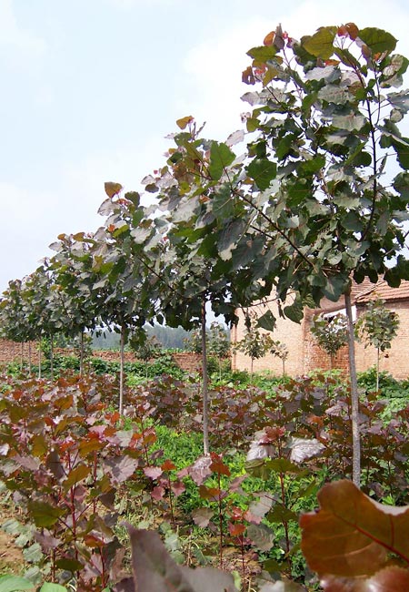 此外,中華紅葉楊還是一個多用途樹種:一是作為獨特的大葉、彩葉樹種,必然大量用于城鄉的園林、道路、四旁綠化、美化;二是利用該品種生長速度快的特點,用作營造速生豐產林,效益也很為可觀;三是由于該樹種集彩葉、速生、大喬木等優良性狀于一身,中華紅葉楊更是當今生態林建設、退耕還林工程以及山川秀美工程的首選和最佳品種。
