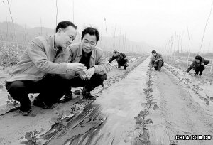 技術員在觀察幼苗的生長情況。